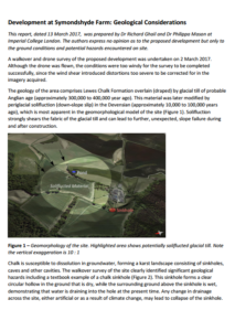 We recently secured the help of world-renowned geologists from Imperial College, London to conduct a geological survey of the site. The survey clearly identified signs of a large sinkhole near Symondshyde Farm and another probable sinkhole further south. Click on the image to view their report.